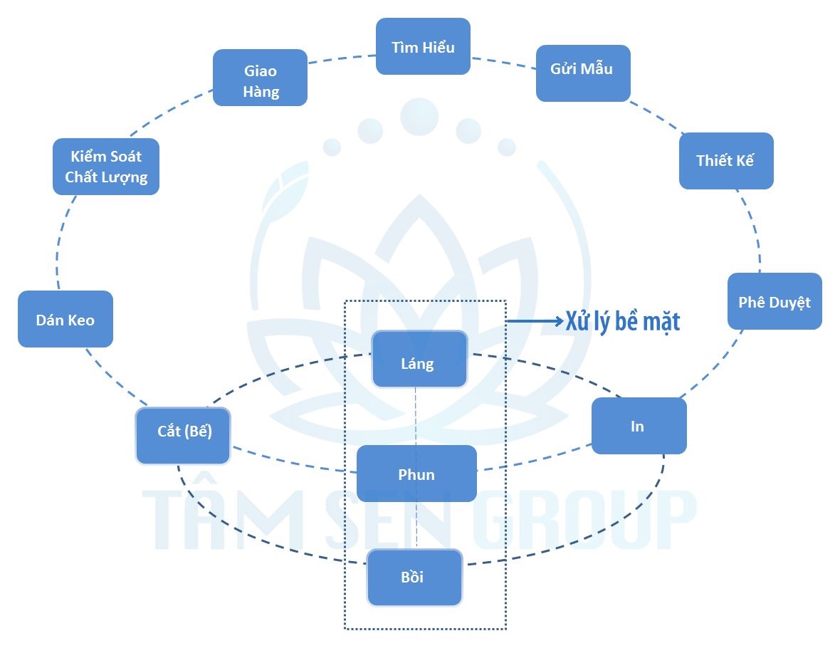 Tâm Sen cung cấp dịch vụ in ấn bao bì hộp theo quy trình khép kín: từ Thiết kế, Sản Xuất tới Giao hàng.