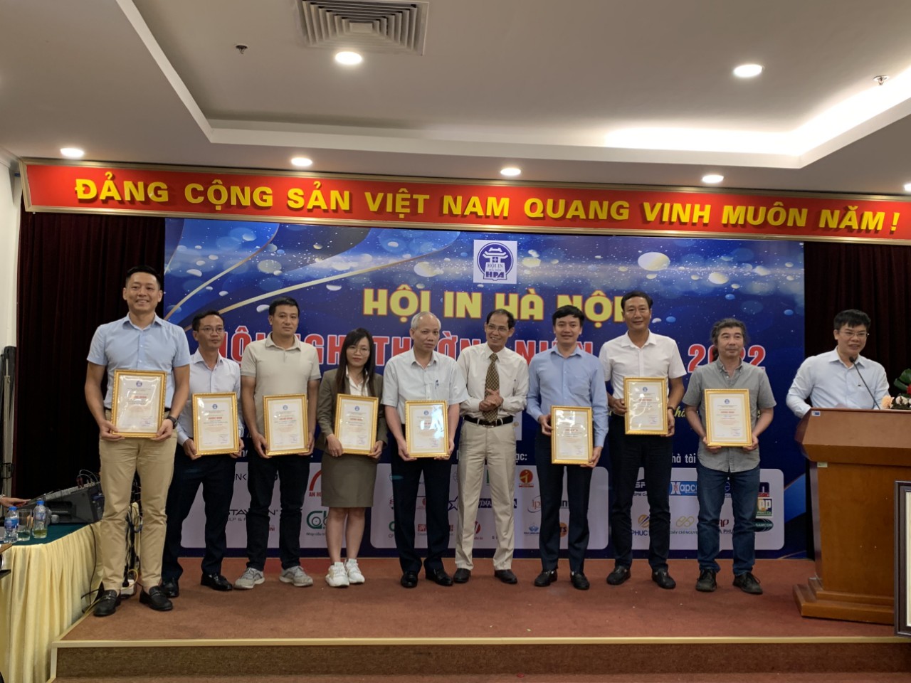 Đại diện công ty nhận giấy chứng nhận của Hiệp hội In Hà Nội