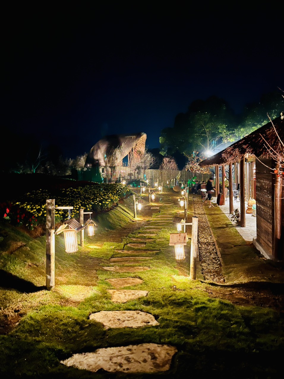 Ánh đèn trúc soi tỏ những bậc đá quanh co